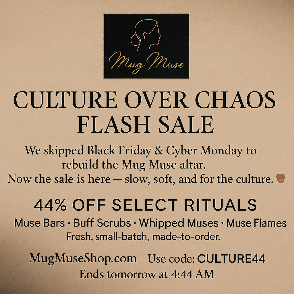 We skipped Black Friday & Cyber Monday to rebuild the Mug Muse altar. Now the sale is here—slow, soft, and for the culture. ✊🏾